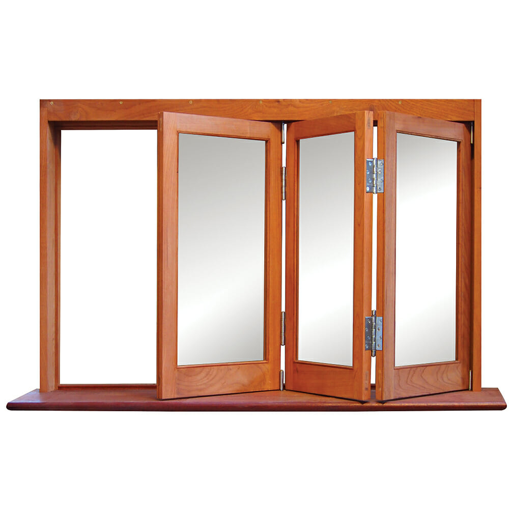 Open up your living and entertainment areas with these beautifully crafted bifold servery windows. We carry a large range of various combinations in stock, folding in either direction. We can also custom make to suit your requirements.